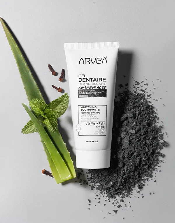 يجمع هذا الجال للأسنان المبيّض بين مكّونات لطيفة وفعّالة لتوفير نظافة فم وأسنان مُثلى. حيث يحتوي على الفحم النشط المعروف بقدرته على الامتصاص والتنقية، ممّا يُساهم في إزالة التصبّغات ويمنح ابتسامة أكثر إشراقًا . كما يساعد أيضًا على تنظيف الفم بعمق من خلال المساهمة في إزالة البلاك وتعزيز إعادة تمعدن الأسنان بفضل محتواه من الفلورايد ( 0.30 % فلوريد الصوديوم – 1360 جزء في المليون ) والعناصر المُعزِّّزة للمينا ممّا يقلّل من خطر الإصابة بتسوّس الأسنان. تركيبته الغنيّة أيضا بالزيوت الأساسيّة للنعناع وللقرنفل تمنح انتعاشا مكثّفا يدوم طويلا وتحافظ على نفس نقيّ طوال اليوم.